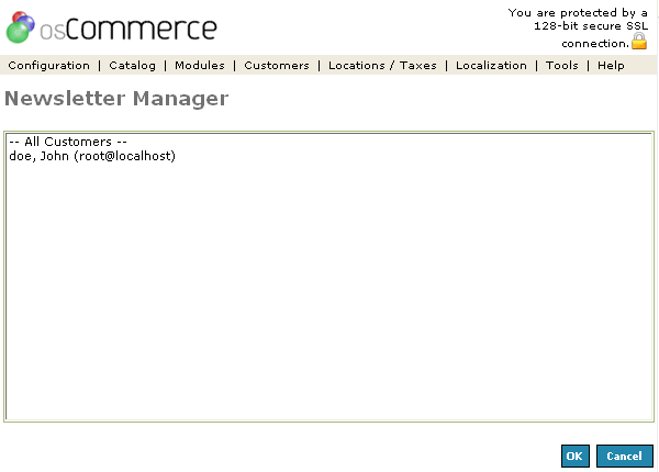 The Newsletter Manager is a newsletter management system that sends emails to a targeted audience, namely the customers that have given their email address when creating an account. Two newsletter modules are installed by default. One is used for sending emails to customers who have selected to receive newsletters upon creating their user account